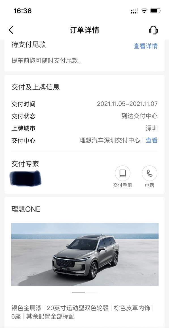 中秋订的理想ONE 状态变为到达了。